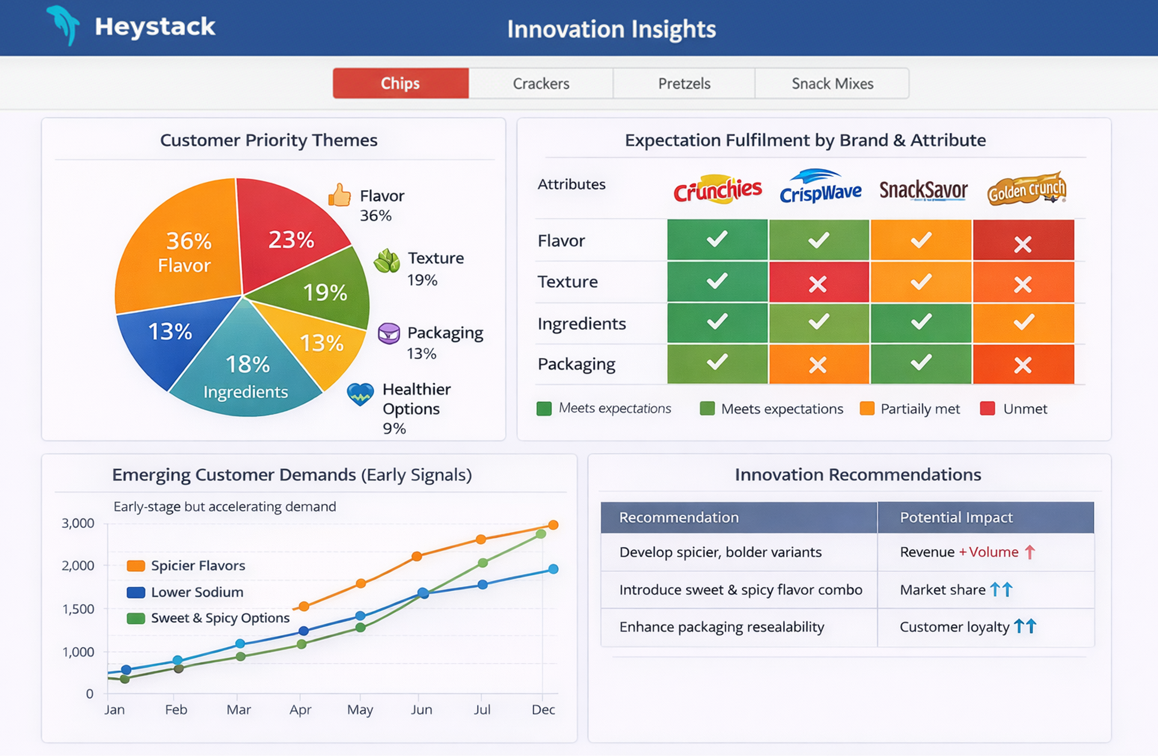Heystack transforms unstructured customer opinions across retail and social channels into clear, actionable innovation signals - revealing